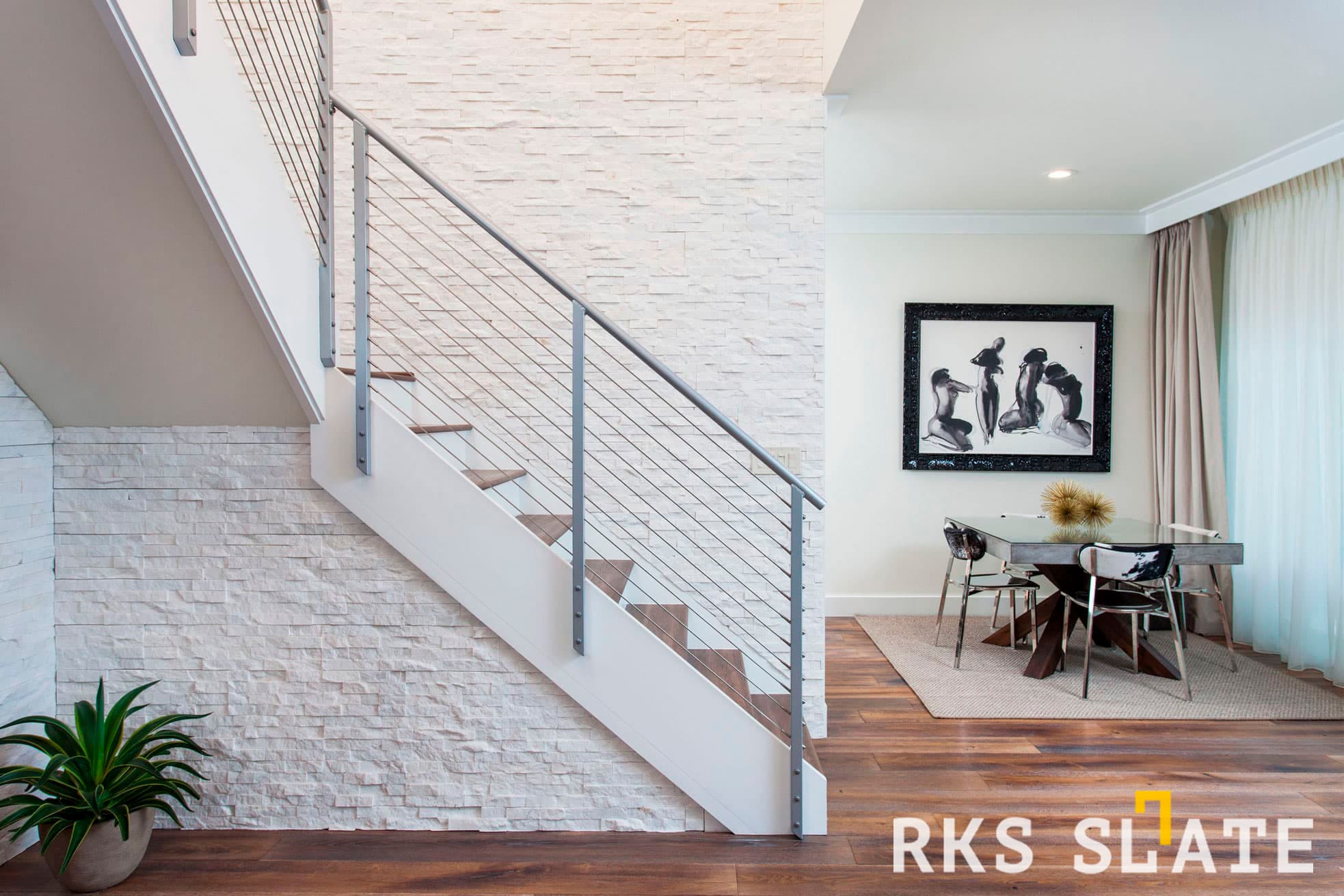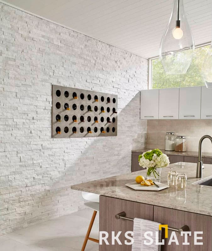 3D панели RKS SLATE Кварцит White Quartz Classic (белый кварцит) - это превосходное решение для отделки стен и создания неповторимого дизайна в вашем интерьере. Эти панели изготовлены из натурального кварцита, который является одной из самых прочных и прочных пород камня.