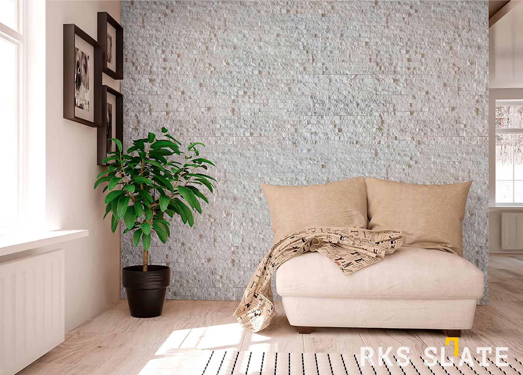 3D панели RKS SLATE Кварцит White Quartz Classic (белый кварцит) - это превосходное решение для отделки стен и создания стильного интерьера. Белый кварцит обладает прочностью, устойчивостью к влаге и прекрасными эстетическими качествами. Он легко монтируется и имеет множество полезных свойств. Выбирая белый кварцит, вы получаете надежный и элегантный материал, который будет радовать вас долгие годы.