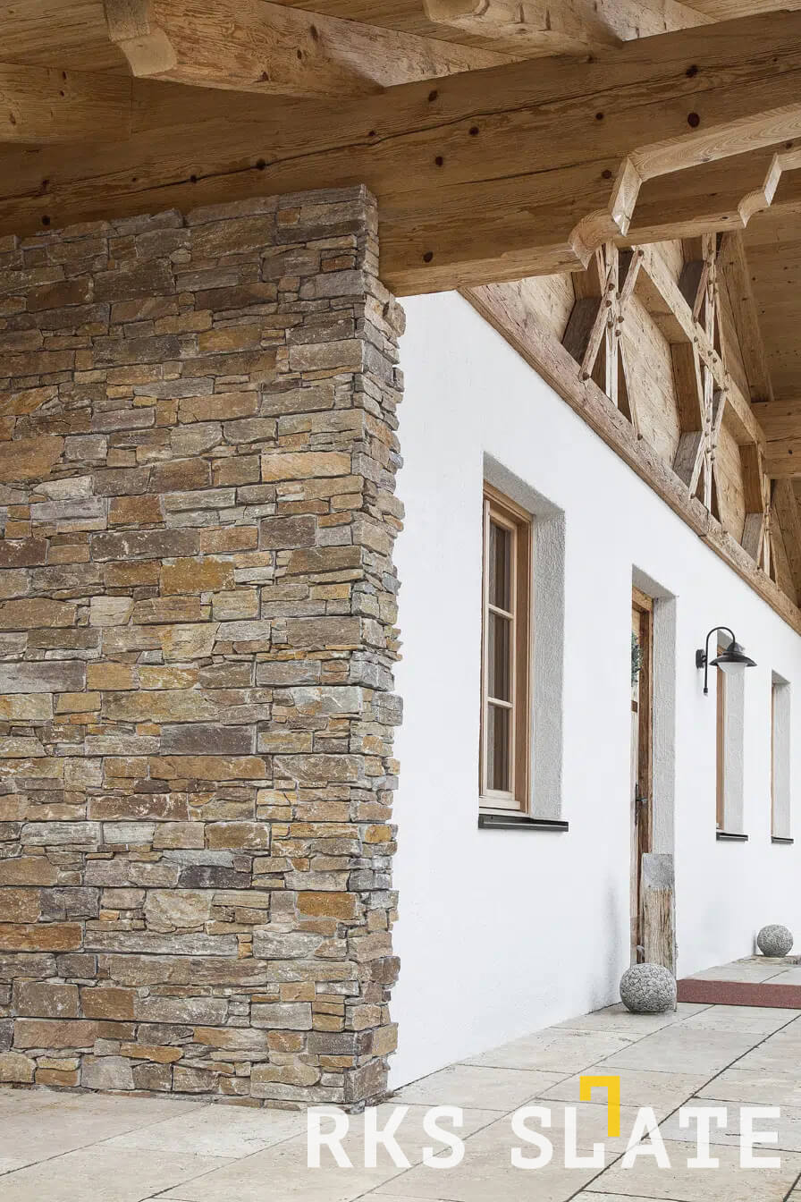 Отделка декоративным камнем - это стильное решение, которое придаст вашему дому особый шарм. Наши панели RKS SLATE Кварцит Beige Quartz Country идеально подойдут для наружной отделки фасада, создавая эффектный и неповторимый облик.